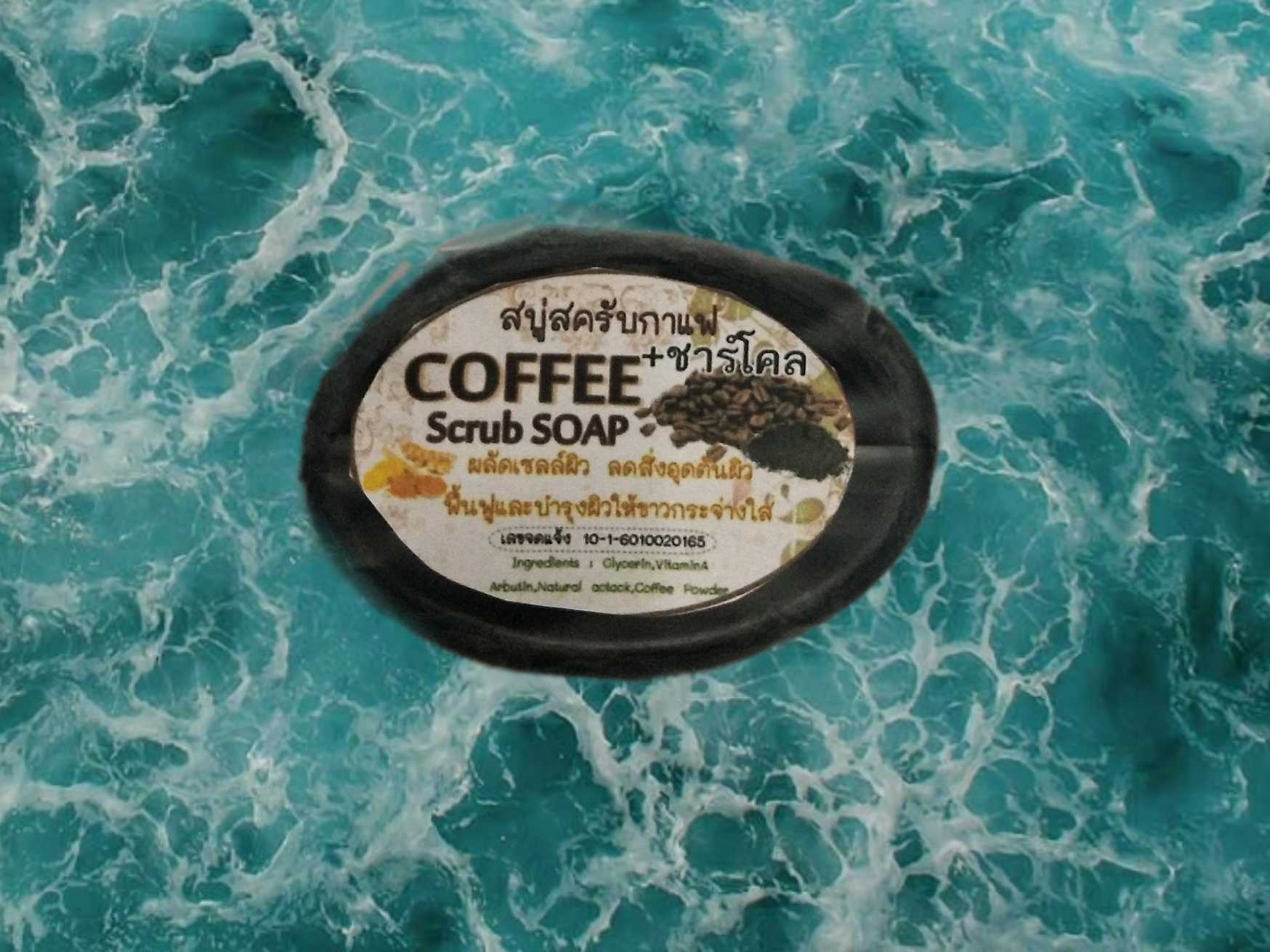 สบู่สครับกาแฟช่วยในเรื่อง บำรุงผิวพรรณ ขจัดความมันทั่วทั้งร่างกาย กากกาแฟ ไว้ถูตามตัวให้สิ่งสกปรกที่อยู่ตามรูขุมขนหลุดออกจนหมดเกลี้ยง ขนาด 50 กรัม